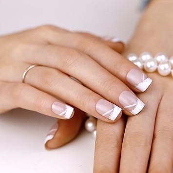 Amazon Com Artplus Preglued 24pcs White Pearl Elegant Touch French Manicure False Nails With Upgraded Adhesive Tabs Press On And Glue Full Cover Medium Length Fake Nails Art Beauty